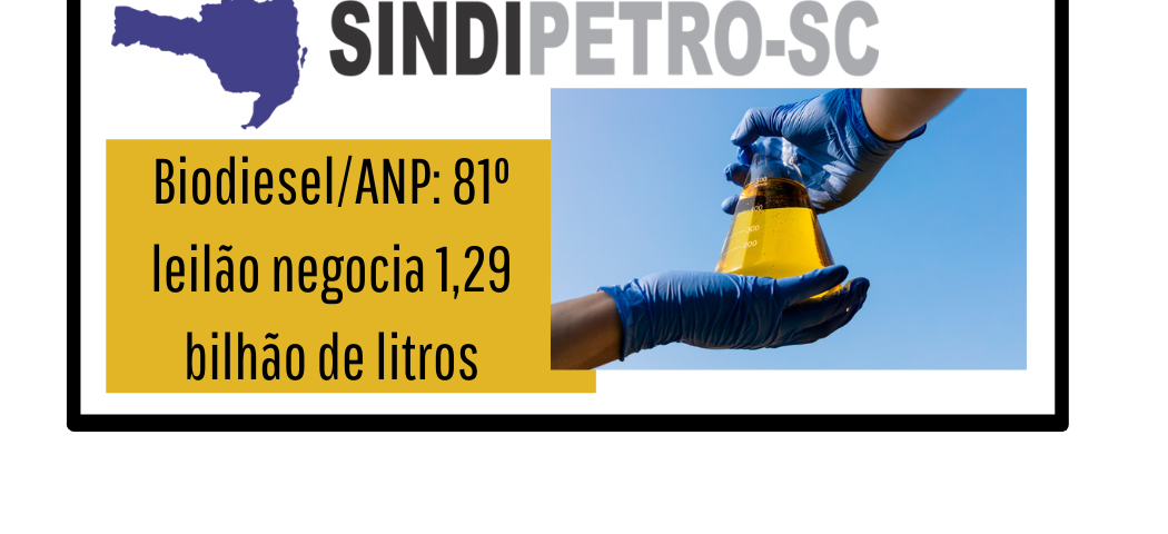 A Agência Nacional do Petróleo, Gás Natural e Biocombustíveis (ANP) disse que foram arrematados 1.293.587.000 litros de biodiesel para atendimento à mistura obrigatória, no 81º leilão do produto. Segundo a ANP, não houve arremates para mistura voluntária. Todo esse volume foi oriundo de produtores detentores do Selo Biocombustível Social. Conforme a ANP, a etapa de apresentação das ofertas para atendimento à mistura obrigatória ocorreu em 9 de agosto, com 45 produtores ofertando um volume total de 1.534.960.000 litros de biodiesel.