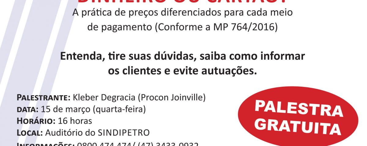 15 de março de 2017Dinheiro ou cartão? – Tire suas dúvidas sobre a MP nº 764 em palestra gratuita
