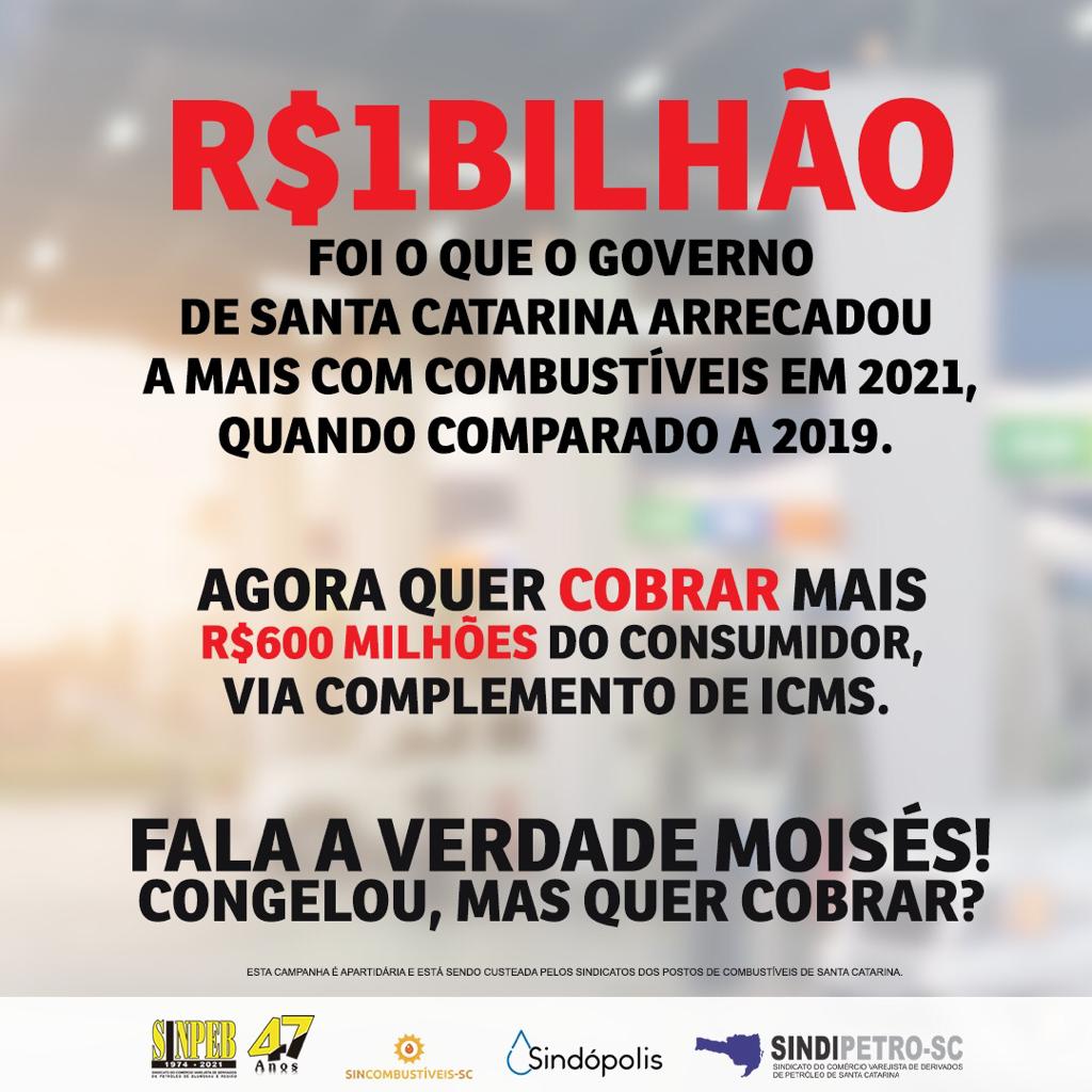 O governador Carlos Moisés quer cobrar mais 600 milhões do consumidor, via complemento de ICMS.