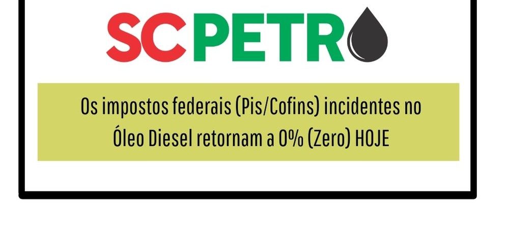 6 de outubro de 2023Os impostos federais (Pis/Cofins) incidentes no Óleo Diesel retornam a 0% (Zero) HOJE.