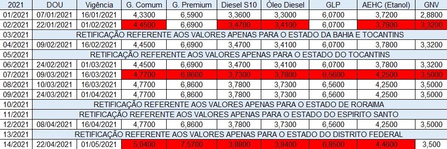 O Diário Oficial da União publicou nesta quinta-feira, 22 de abril, o Ato Cotepe PMPF 14/2021 alterando os valores dos combustíveis.