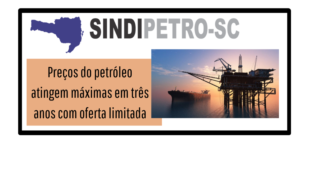 Preços do petróleo atingem máximas em três anos com oferta limitada