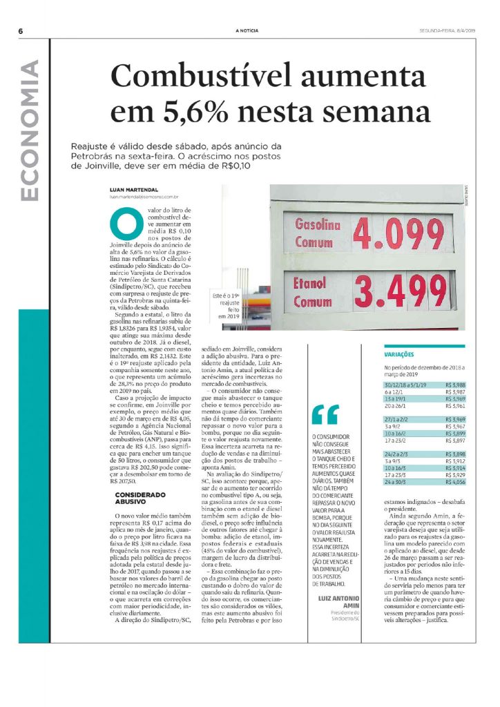 15 de abril de 2019Saiu na Mídia: Imprensa repercute nota do SINDIPETRO/SC sobre aumento da gasolina