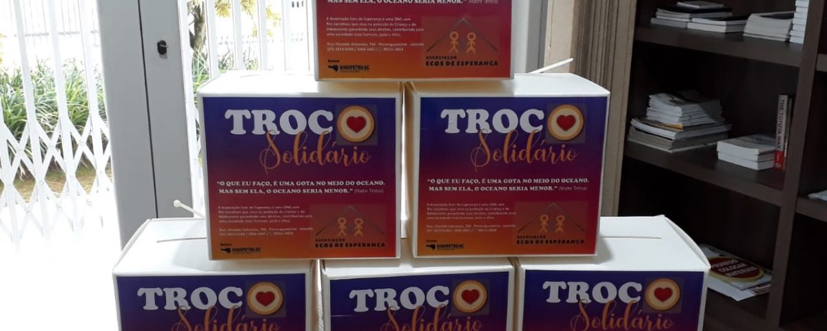 Em parceria com a Associação Ecos de Esperança, o SINDIPETRO/SC lança o projeto Troco Solidário. A iniciativa busca arrecadar a doação de troco para a instituição. A ideia inicial prevê a colocação de 30 caixinhas coletoras identificadas em diferentes comércios da cidade, e, principalmente nos postos de combustíveis.