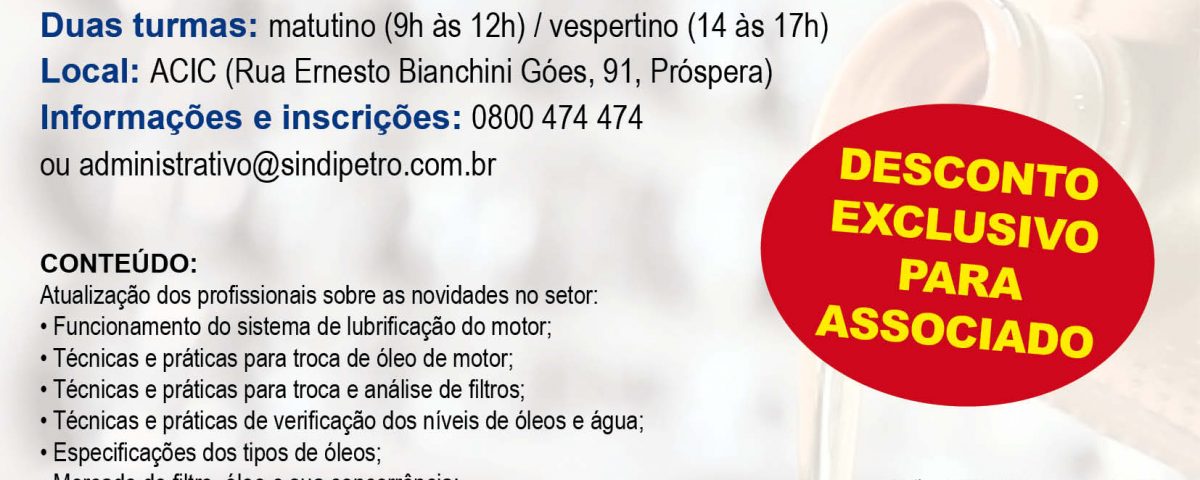 ATENÇÃO: Desconto especial para associados ao SINDIPETRO/SC.